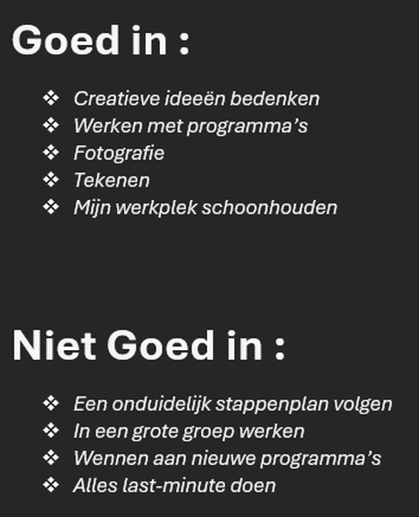 Lijst van dingen waar ik goed en niet goed in ben