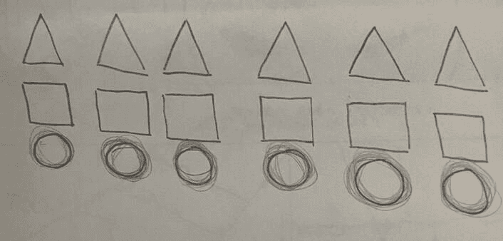 Teken met losse pols perfectie driehoeken, vierkanten en cirkels