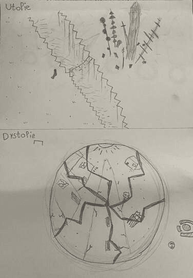 Teken in je schetsboek een utopie en een dystopie
