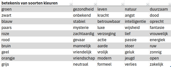 Verschillende betekenissen van kleuren